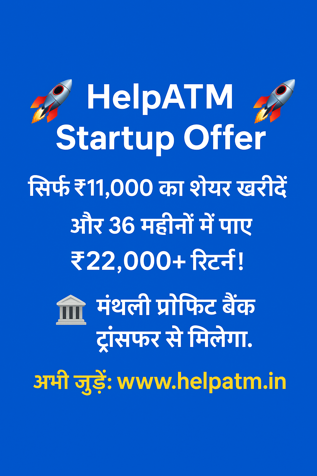 ऑफर डिटेल्स: ₹500 में 1000 व्यूज़ की लगभग । रिचार्ज बुकिंग 500 के मल्टीपल में। ( www.Helpatm.in वेबसाइट से बुकिंग अनिवार्य) अपना इमेज या 1 मिनट वीडियो भेज सकते हैं अगर हमसे बनवाना है — • ₹100 प्रति इमेज • ₹300 प्रति वीडियो आपको